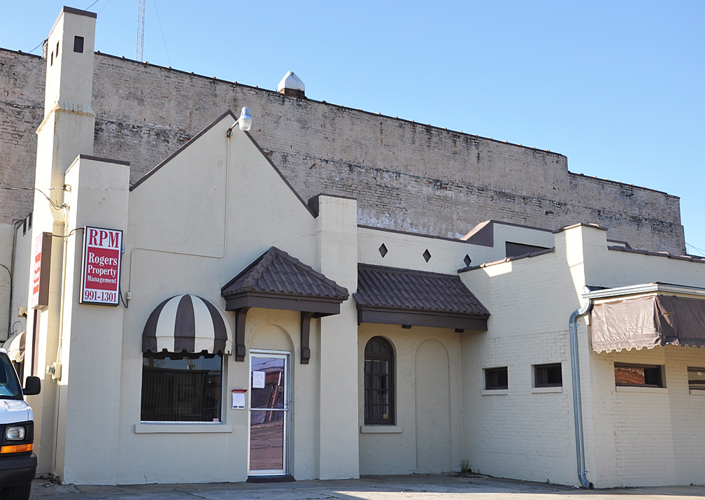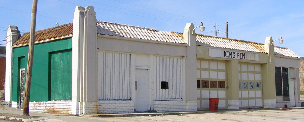 | This former Gulf station was built in the early or mid-1930s and remained in operation until the 1970s. It has been abandoned since at least the late 1990s. It was known as Fletcher's Gulf station and the middle part of the building between the two bays was used as a combination office and bar. When these photos were taken in 2010, restoration work had just begun. Since 2011, the building has housed Geer Street Garden, a restaurant and bar. [map] |