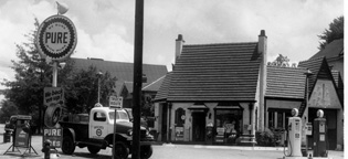 This former Pure Oil station in Durham was built in 1937. The building now houses the Couch Oil Company. In 2016, a modern Pure Oil station opened next door. For more, see this website. [map] |