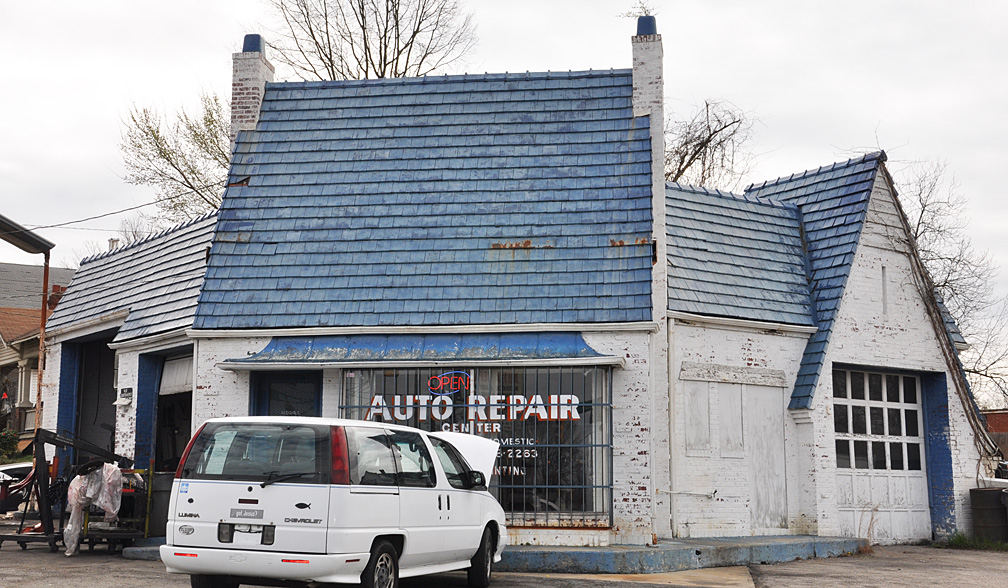 | This former Pure Oil station housed a car was for many years. These photos are from 2009. It now houses the Pink Door & More, an interior design store. For more, see this website. [map] |