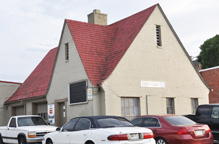 | This tiny former station with the sloped roof was built in the 1920s. It may have housed a White Eagle station originally. Over the years, it was boxed in by garages. The buildings have housed Ryan's Used Cars since 1982. [map] |