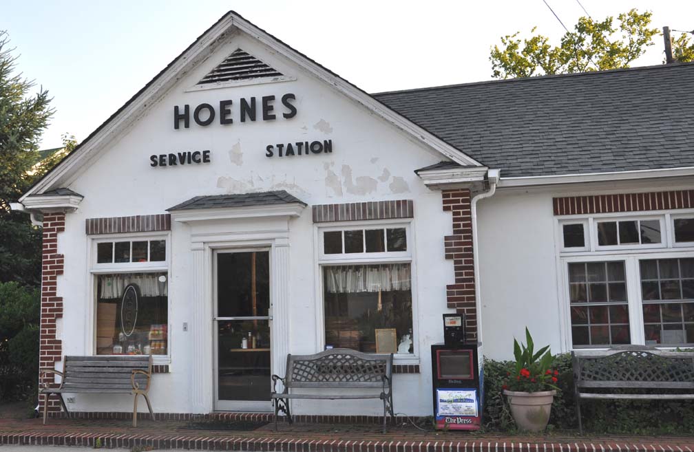 | The former Hoenes Service Station has housed the Gilchrist Offshore Restaurant since 2007. The photos are from 2009. It was previously a Mobil station but I don't know what brand was sold here originally. The building shown in the third photo is located next to the office building. I assume it was used for service bays originally. It now houses Kizbee's Kitchen. There are now modern pumps on the lot which are used for a Delta station. [map] |