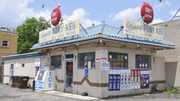This former station in Cincinnati may have been built in the 1920s. The building has housed the Glenway Pony Keg since at least the 1950s. A pony keg is another name for a convenience store. The red lottery signs were probably originally Coca-Cola button signs. [map]