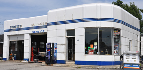 | This former Humble station housed the Francois Auto Clinic when these photos were taken in 2012. This building was designed by Esso which operated under the Humble name in Ohio. The building now houses a car repair shop. [map] |