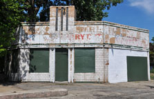 | The M.D. Garage is a restored 1946 concrete block station. The building was probably faced with porcelain enamel originally. The vintage Pure Oil signs and pumps were added during a restoration in the late 1990s. The building remains vacant. I don't know what brand of gas was sold here originally. [map] |