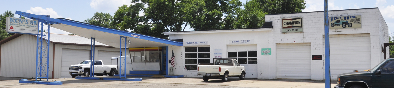 | This former Phillips 66 station housed Ken's 66 repair shop from 1970-2020. The building is currently vacant. [map] |