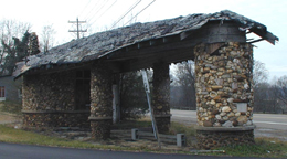 This former Gulf station is also known as the Rose Service Station. It was built in 1930 by Carson Rose and closed in 1956. The station was restored by the town in 2001 and serves as a mini museum of petroliana. The exposed brick with lighter colored brick inlay was typical of the Gulf canopy design. [map]