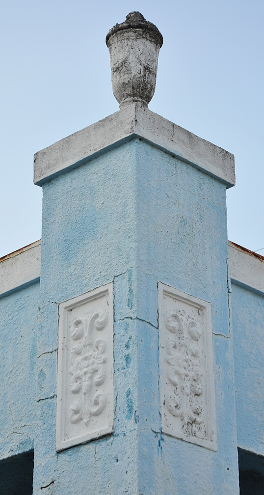 | The urns and other decorative details on this former station might be original. The building has been vacant for many years. [map] |