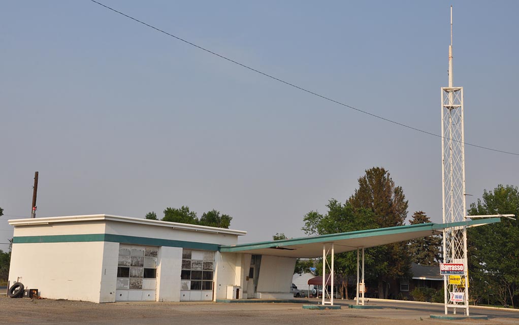 This former Oval-E station in Lovell housed a garage door business when this photo was taken in 2012. The building is vacant now. [map] |