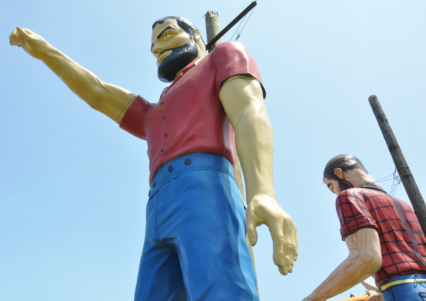 | This Mr. Bendo was one of the statues in storage in Indianapolis as described above. It is now located at Atlantis Plumbing with many other statues. The owner, Michael Whitman, painted the statue in typical Bunyan red and blue. Normally, these statues were painted with a rust-colored shirt and white pants. [map] |