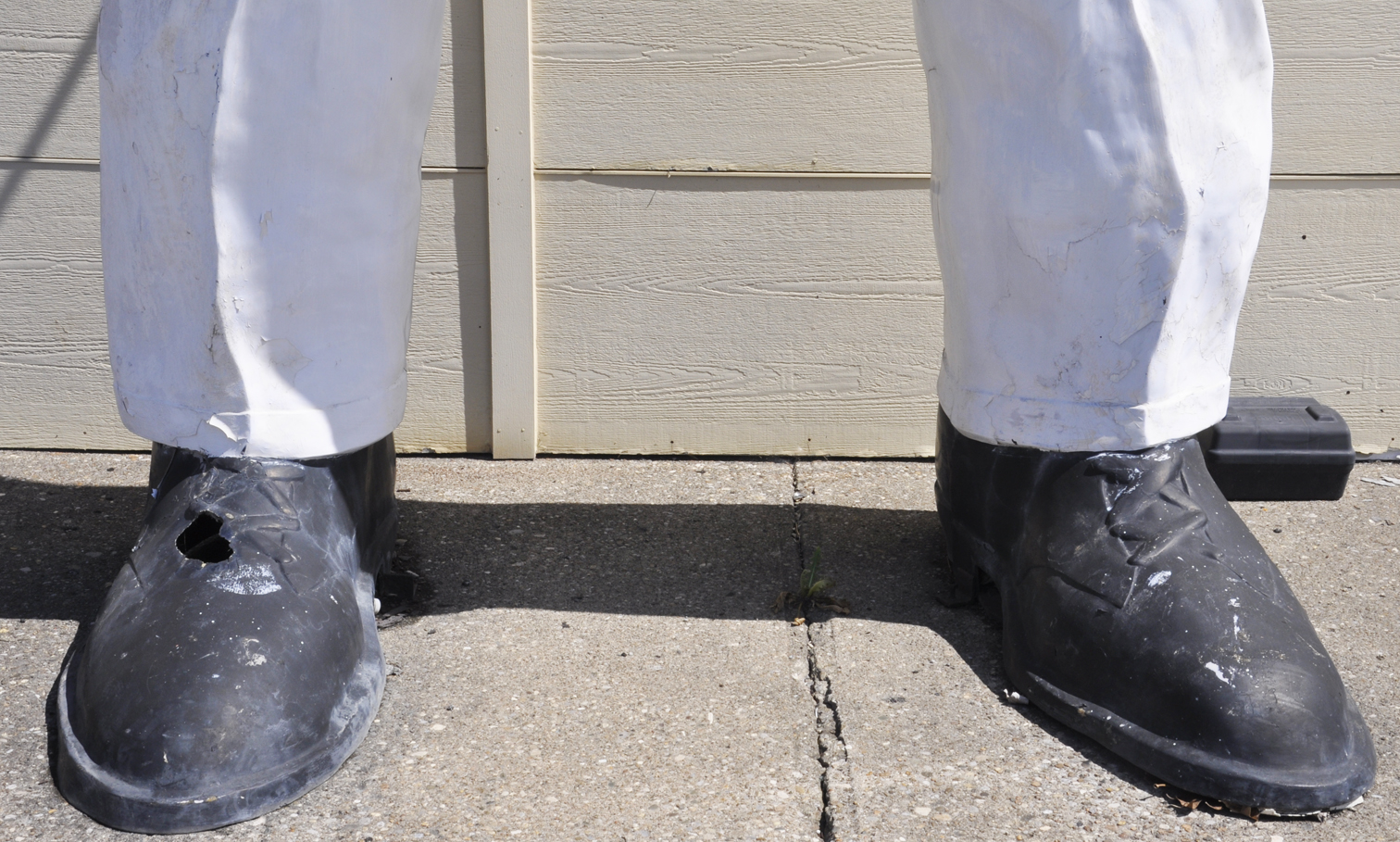 | This Mr. Bendo statue is unusual in that it has the standard one-up/one-down hands versus the raised arm. This appears to be original since the fiberglass muffler is also original. Originally, the statue stood in downtown San Angelo at Fillip Automotive. It has been at this residential location since 1989. For more, see this website. [map] |