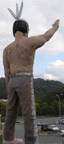 | This Indian statue was meant to represent Nanabozho. According to Ojibwe legend, Nanabozho beat Paul Bunyan to death with a fish for destroying so many trees. This statue was installed in front of Morelo's Chippewa Trading Post in the mid-1960s. In the 1980s, the business moved and the statues was brought along. The new location was directly across the street from Paul Bunyan and Babe statues. In 2025, the business was preparing to move again but the statue could not be moved there due to sign codes. The statue was removed and will be restored and displayed at the American Giants Museum in Atlanta, IL. For more, see these websites: 1, 2, and 3. |