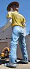 | This Mortimer Snerd statue was originally installed at Poor Boy's Pantry in Kansas City, KS. While it was there in the 1980s, the statue was painted with a Hawaiian shirt. It then disappeared in the 1990s. The statue was sold in 1998 and installed at the Dort Mall in Flint, MI. While there, the statue was known as "Howdy Doody." Bob Perani owned the statue and the mall which had a collection of his signs and other items inside. Perani passed away in 2012. In 2014, the statue was sold and moved to Bell Plastics in Hayward, CA where there are many other International Fiberglass statues and a Fireman shown in the bottom row above. In 2017, the statue was repainted. For more, see this website. [map] |