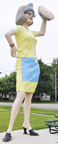 | This Miss Uniroyal statue was originally installed in Downers Grove, IL. When the owner retired and moved to Florida, he brought the statue with him. After he passed away, his son sold the statue in 2013 to the owner of Edmunds Metal Works. The statue remained on a trailer until she was put on display around 2014. She was removed in 2017 and painted with her current look. The owner calls her "Tootsie." For more, see this website. [map] |