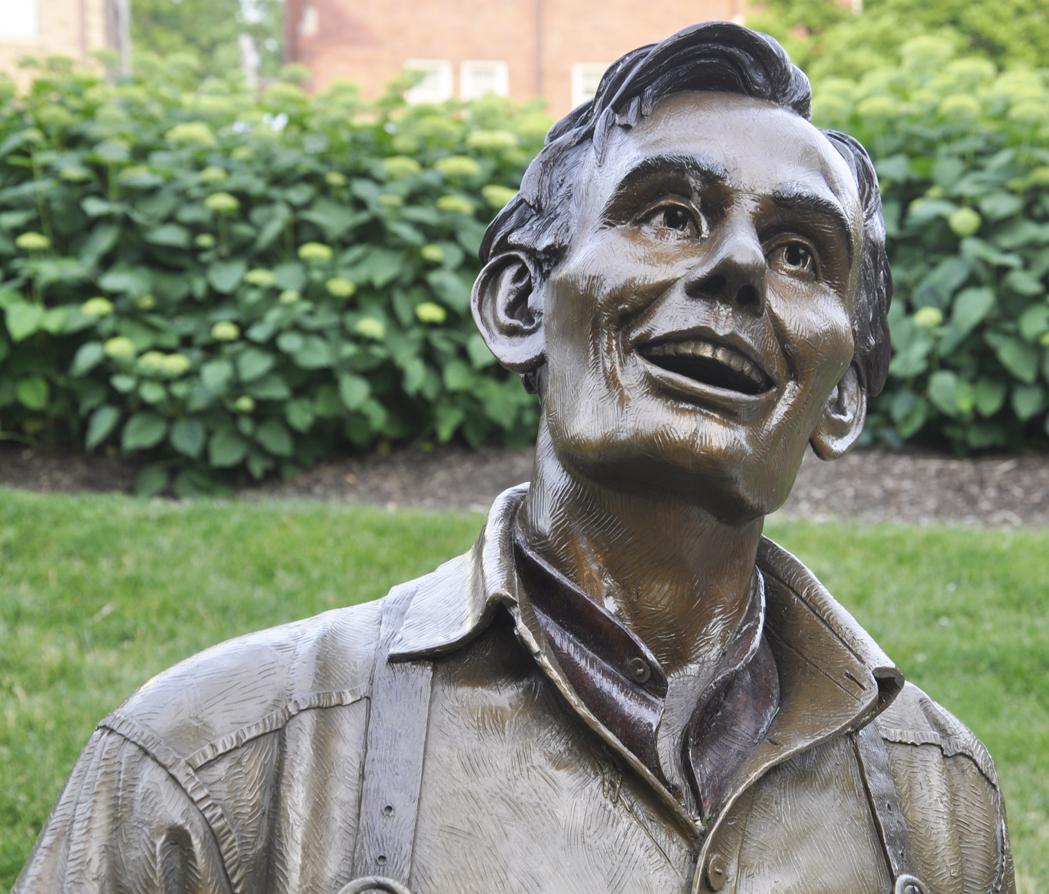 This bronze Abraham Lincoln sculpture, entitled "Laughing Lincoln," was created by David Alan Clark and installed in 2018. For more, see this website. [map]