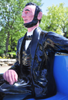 The standing, bronze Abraham Lincoln sculpture was created by John W. McClarey in 2004. Entitled "A Greater Task," it depicts him giving his farewell address to Springfield in 1861 before leaving for Washington, D.C. to become President. For more, see this website. [map] The seated, bronze Abraham Lincoln sculpture was created by Mark Lundeen and installed in 2006. Entitled "Lincoln's Bench," he holds the Second Inaugural Address in his right hand. For more, see this website. [map] |