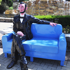 This Abraham Lincoln on a couch was originally located in Chicago as part of the 2001 "Suite Home Chicago" art project. About 350 sofas, chairs, and other pieces of fiberglass furniture were painted by different artists and temporarily installed and then auctioned off. I don't know of any that are still displayed in Chicago. This statue has been installed in front of the Niles Veteran's Memorial Waterfall since at least 2006. For more, see this website. [map] |