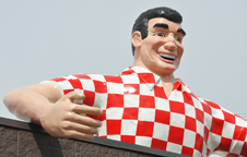 | This top part of a Big John statue was produced by Mark Cline for the Hutch Vintage Market in 2022. He created it from an original fiberglass mold which was abandoned in the 1980s in Tennessee. This statue has been named "Big Lonnie." For more Big John statues, see this page. [map] |