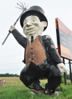 | Johnny Kaw is a mythical Kansas settler. This 30-foot-tall statue was built in 1966. It is made of concrete over a steel frame. Johnny Kaw holds a scythe for harvesting wheat. For more, see this website. [map] |