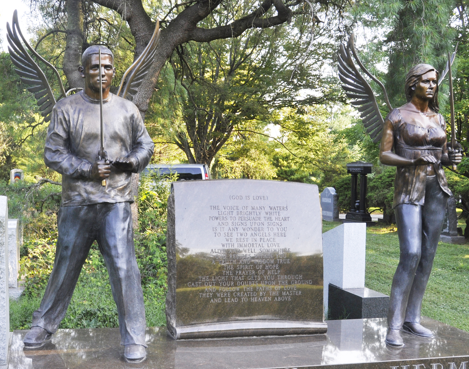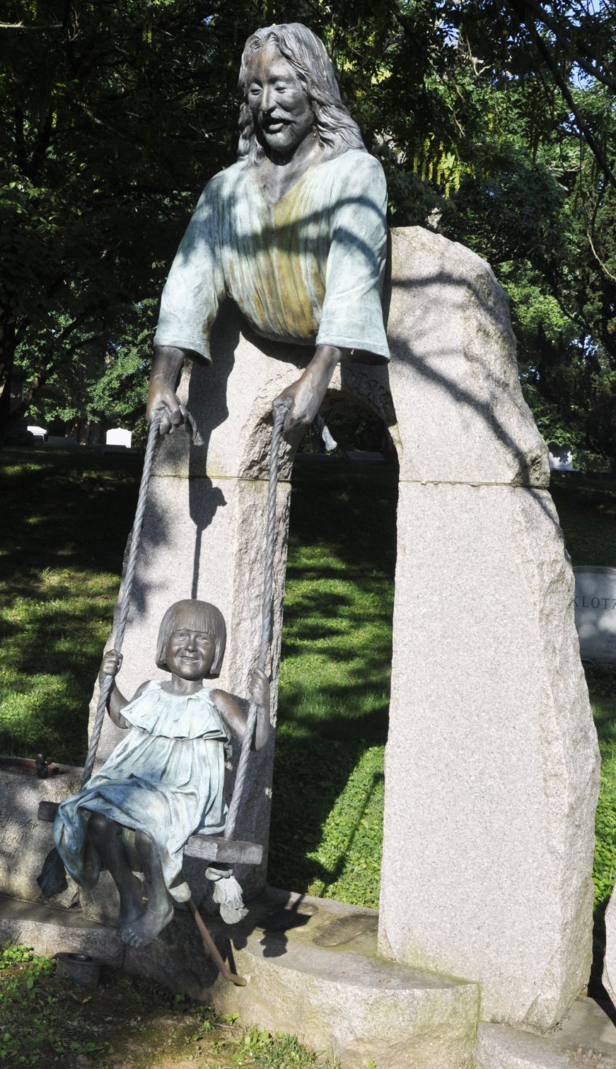 | These unique statues at the Cave Hill Cemetery include a magician, Jesus pushing a girl on a swing, and two angel warriors. For more, see these websites: 1, 2, and 3. |