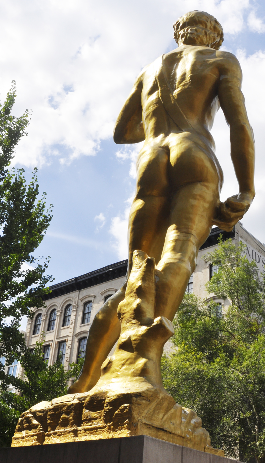 This 30-foot-tall statue of David is nearly twice the height of Michelangelo's statue. It was created with spray-painted foam by Serkan Ozkaya in 2005 for the International Istanbul Biennial. It was briefly installed in New York in 2011 and then moved here in front of the 21c Museum Hotel. [map] |