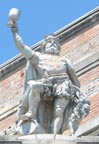 These Jesters stand in front of the Beads by the Dozen showroom. The company sells Mardi Gras items, Christmas decorations, and party supplies. There are a few other fiberglass statues like this around town and elsewhere. For more, see these websites: 1, 2, and 3. [map] This Gambrinus statue is installed on the roof of the former Falstaff Brewery which has a recently restored sign. The brewery closed in 1978. The building now houses apartments but the statue of the patron saint of beer remains. [map] There are other Gambrinus statues in Baltimore, MD, Milwaukee & La Crosse, WI, and Columbus, OH. |