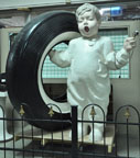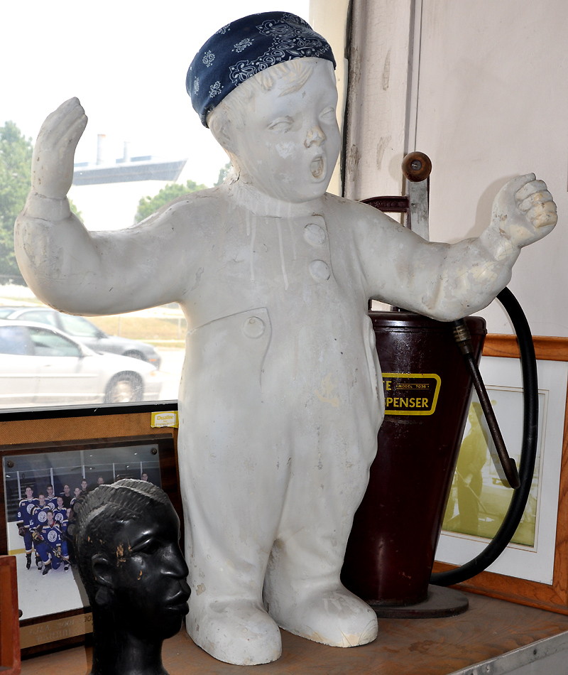 The Fisk Tire Boy statue in Flint was located inside the Dort Mall when this photo was taken in 2011. This statue is probably gone now.