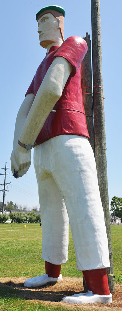 | This Golfer statue was located in front of the Riverbend Driving Range. Just down the road from that is World's Finest Frozen Custard which has a mini golf with other fiberglass statues including a Muffler Man holding a golf club. In 2020, this Golfer was moved and now stands behind the Red Barn Vintage Market. In 2021, he was repainted. [map] |
