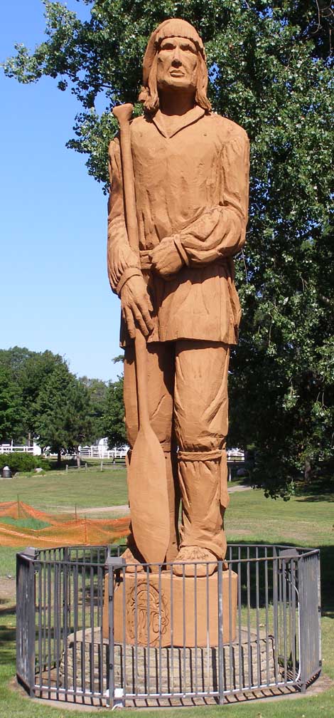 The Voyageur in Cloquet is about 20 feet tall and made of fiberglass. He was installed in Dunlap Island Park in 1976. In 2017, the statue was removed and restored by [map]. Later that year, it was installed at Park campground. [map] The Voyageur in Pine City is 35 feet tall and was carved from a California redwood in the 1970s. He is installed in Riverside Park. The statue is decorated with a Santa hat during the Christmas season. [map] |