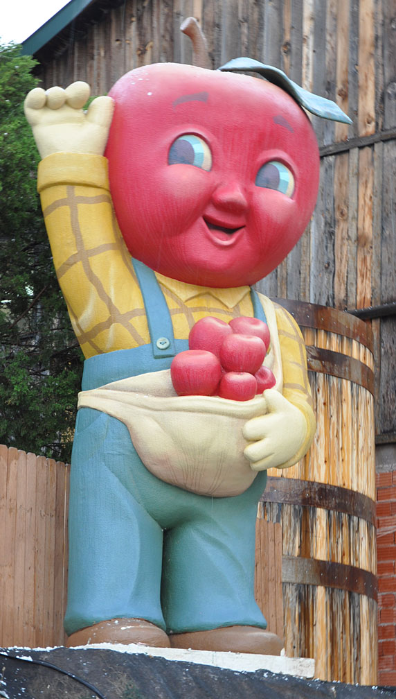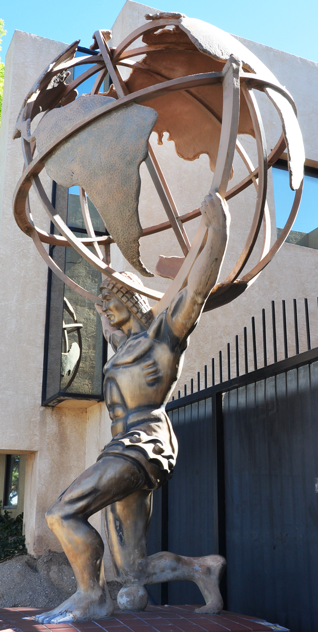 This wooden statue of San Felipe de Neri was previously located at the Church of San Felipe de Neri downtown. Since around 2017, the statue has been located at the Casa Barelas community center. [map] This Apple Boy statue is located at the Old Apple Barn. The statue was sculpted by the store's owner, Bill Niffenegger, in 2010. The statue is about 12 feet tall. These photos are from 2012. In 2021, the statue was repainted. [map] This Atlas statue is installed in front of the World Dental Implant Center. It has been there since at least 2007. These statues were mass-produced for Jack LaLanne Fitness Centers. For more, see this page. [map] |