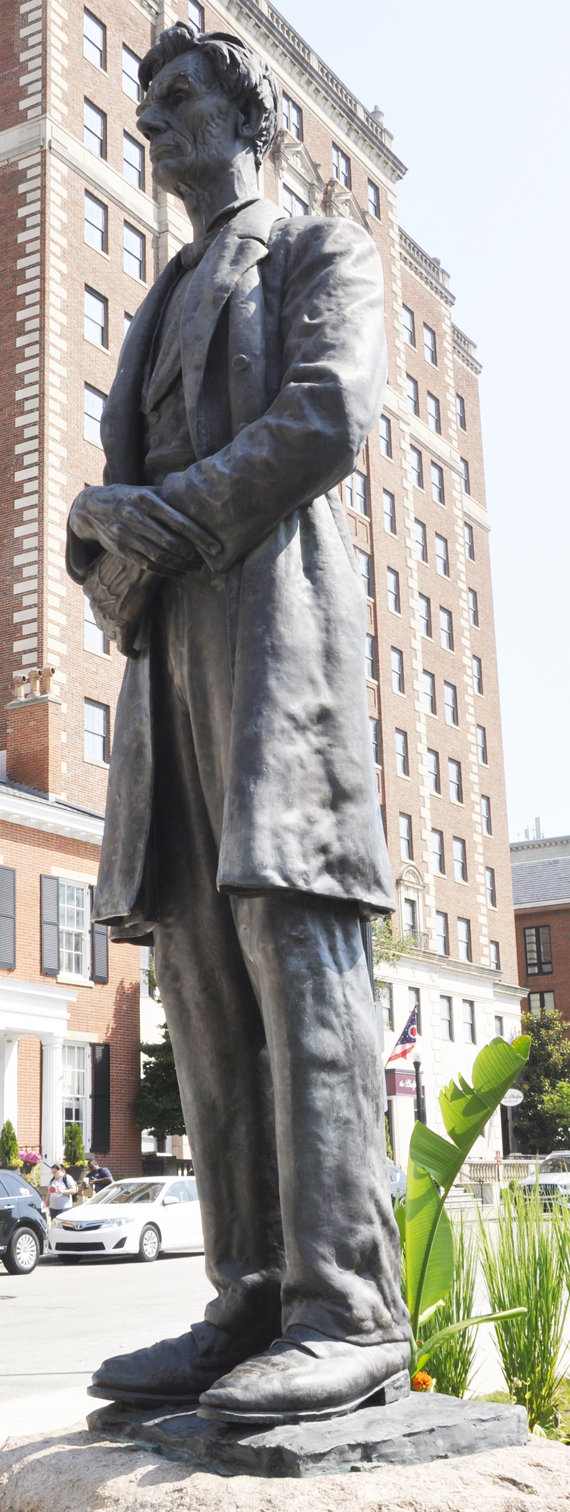 The statue on the right may be nicknamed Panchito. It was installed in 2024 in front of the Tequila Modern Mexican restaurant. The statue is moved inside at night and during bad weather. [map] This 11-foot tall bronze sculpture of Abraham Lincoln was installed in Lytle Park in 1917. It was created by George Grey Barnard. For more, see this website. [map] |