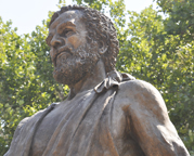 | This bronze sculpture of Lucius Quinctius Cincinnatus depicts the ancient Roman soldier and statesman after which Cincinnati was named. The sculpture was created by Eleftherios Karkadoulias in 1982 and given to city in 1984 and installed in Sawyer Point Park. [map] |