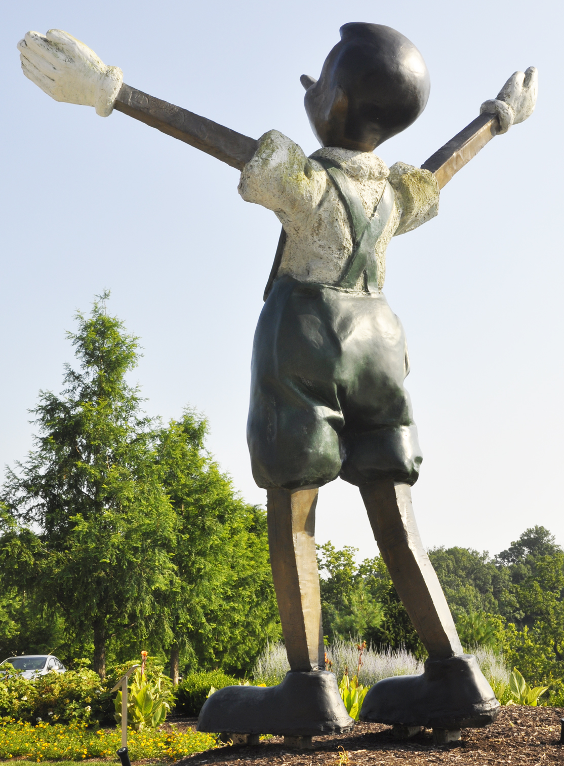 | This 12-foot-tall bronze Pinocchio sculpture was created by Jim Dine and installed at the Cincinnati Art Museum in 2007. For more, see this website. [map] |