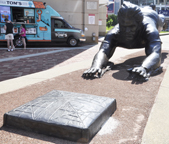 Twenty-four Mr. Redlegs statues sitting on benches were installed around town in 2019 to celebrate the 150th anniversary of the Cincinnati Reds baseball team. The statues have different eras of uniforms. For more, see this website. [map]