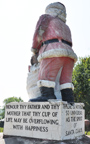 The Santa Claus in North Pole is located at Santa Land House which opened in 1952. The statue is 42 feet tall. It was built in the 1960s by Wes Stanley of Stanley Plastics in Enumclaw, WA. It was originally a seasonal display at the Westlake Mall in Seattle. Originally, one of the statue's arms moved and he smoked a pipe. At some point, the statue was installed in Anchorage, AK. In 1978, the statue was purchased by the owner of Santa Land House. After restoration, the statue was installed at Santa Land House in 1983. For more, see these websites: 1 and 2. [photo thanks Mike Engle] [map]