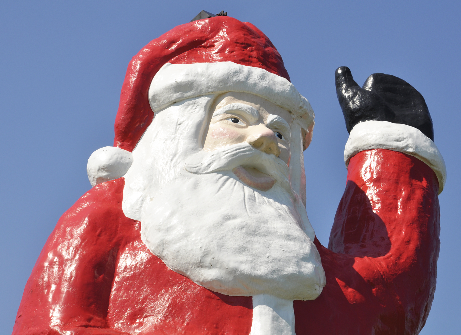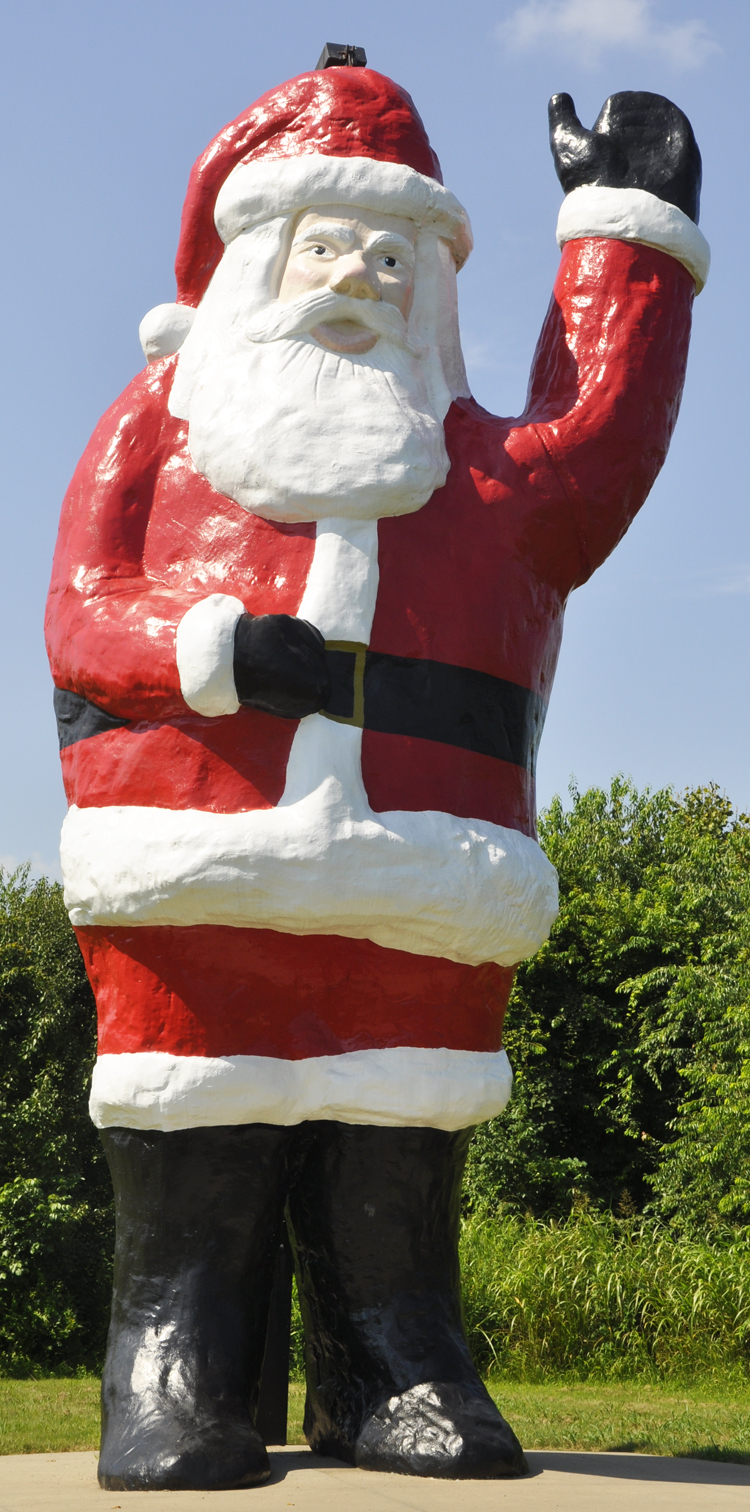 | This Santa Claus statue is located at the south entrance to this tiny town with Christmas-themed street names. There is an identical statue and welcome sign at the north entrance. They were installed sometime between 2008 and 2014. [map] |