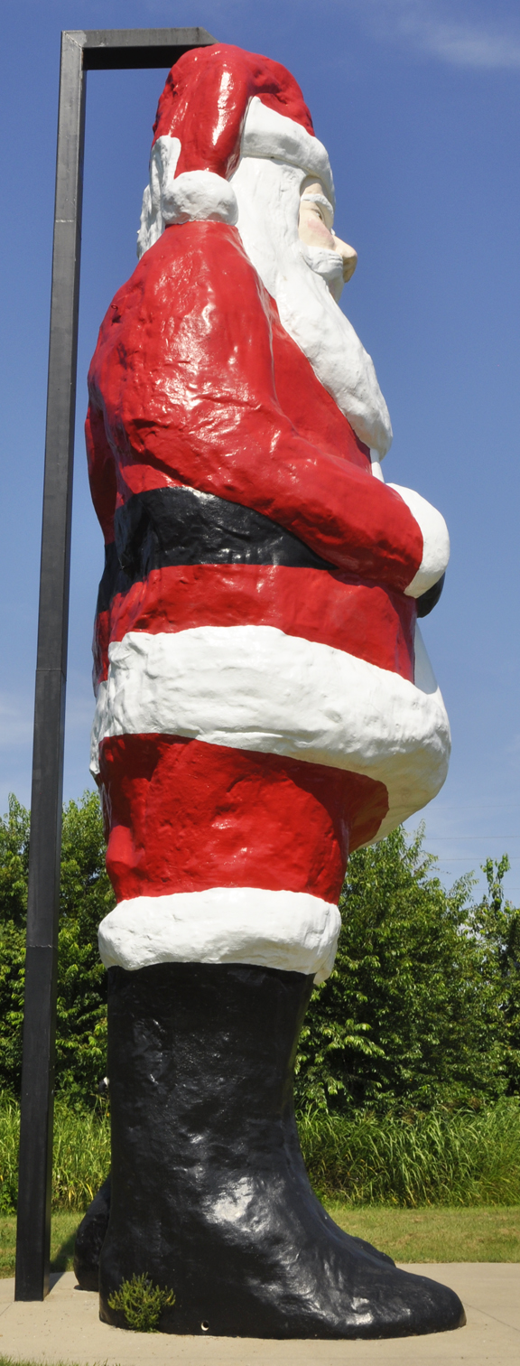 This Santa Claus statue is in Marshall was all that remained of Christmas Land, a seasonal drive-thru park. Christmas Land closed around 2008. These photos are from 2011. The remains of this statue were still there in 2013 but gone by 2016. For more, see this website. |