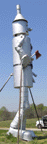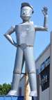 | In 1971, this six foot tall Tin Man was installed on the roof of King Heating and Air Conditioning in Oak Forest, IL. He was a local icon and dressed up for holidays. The statue was taken down for repairs in 2006 and then reinstalled. The City, pressured by condo developers across the street who considered the statue an eyesore, demanded that statue be shortened to comply with sign regulations. Instead of altering the Tin Man, he was removed in 2007. He was located at Bobby C's Automotive in Markham, IL when the photos on the left were taken. The statue made appearances in local parades and fundraisers. In 2011, a variance was granted and the statue has returned to the roof of King Heating in Oak Forest. For more, see these websites: 1, 2, and 3. [map] |