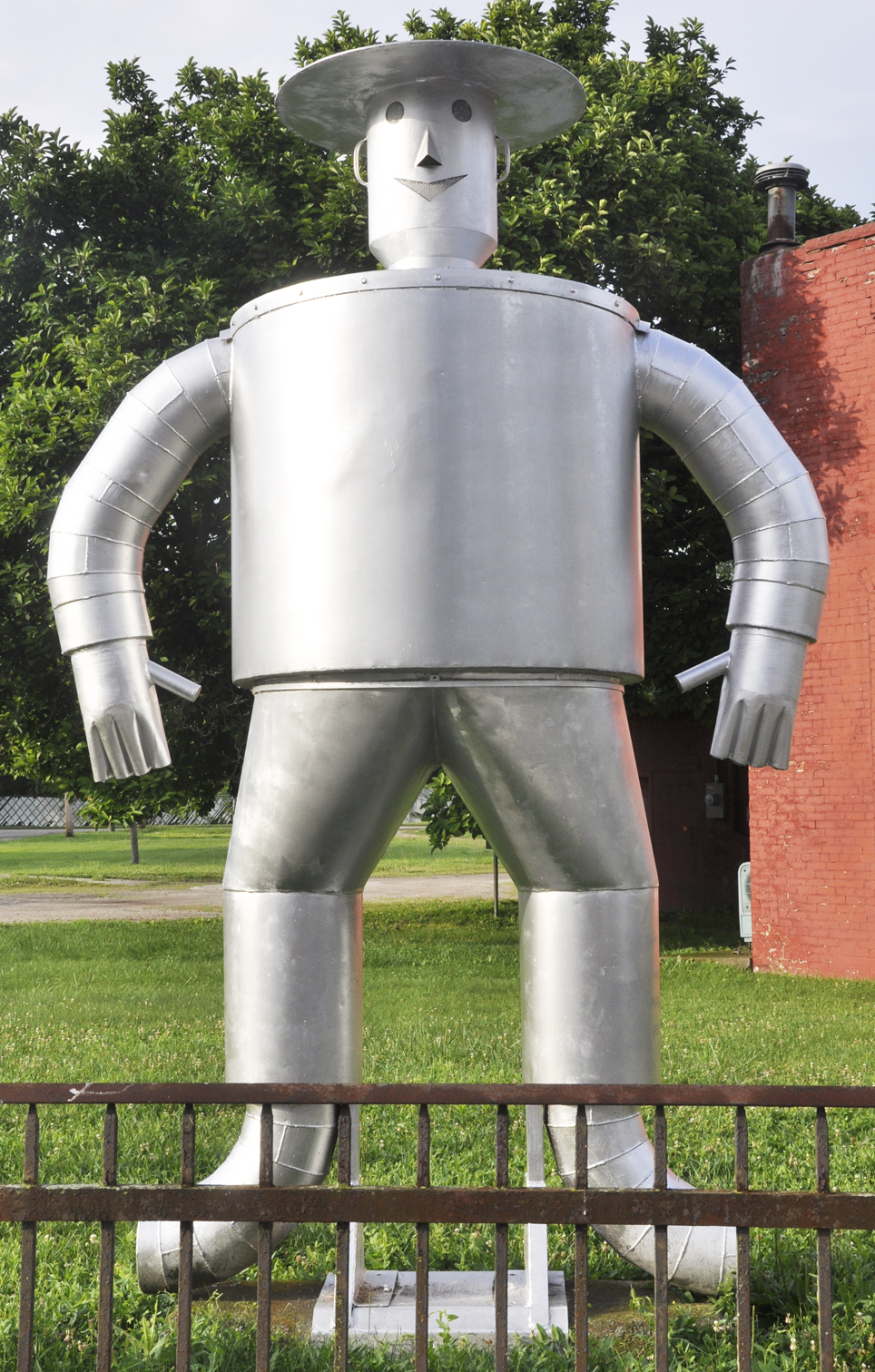 | This Tin Man in Muncie has stood in front of Delbert M. Dawson & Son's Industrial Sheet Metal and Steel Fabrication shop since at least 2007. He is about eight feet tall. [map] |