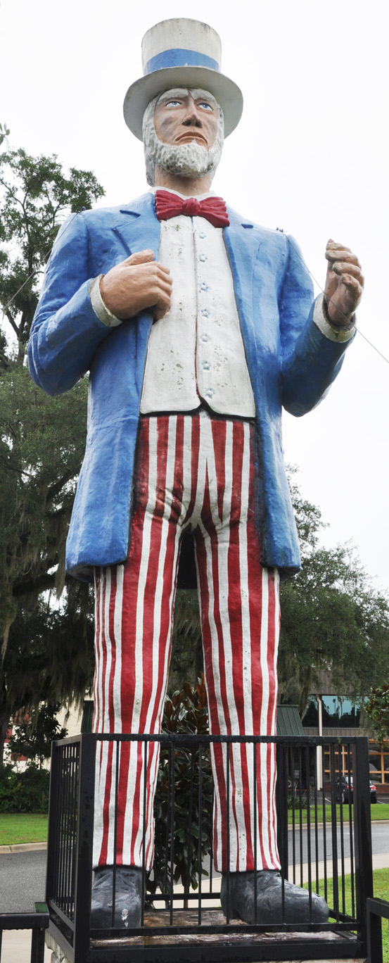 | This Uncle Sam statue laid on its back behind the Top Dollar Pawn Shop in Clarksville in 2007. The store owned him for several years. In 2006, when the business relocated in town, the statue was brought along. By 2009, the statue had been sold. The last I heard, they had wanted more than $10,000 for the statue but I doubt they got that much. The statue has been installed in front of the Tallahassee Automobile Museum since at least 2010. I have not seen any other Uncle Sam statues of this type but I would assume that others were made. [map] |