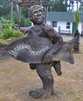 This man at Fat Smitty's is one of many wood carved statues installed in front of the restaurant. This statue has been there since at least 2006. [map] The wood-carved Captain statue is installed at the Olson's Resort restaurant. |