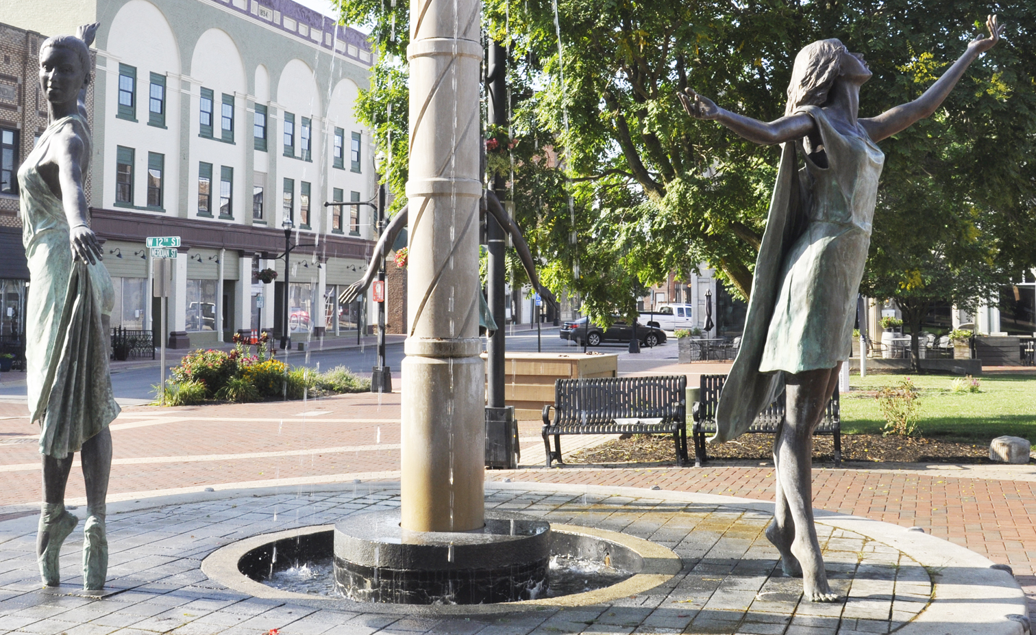 | The Graces sculpture was created by Kenneth G. Ryden in 2003 in Dickmann Town Center. The bronze figures are installed in a fountain. [map] |