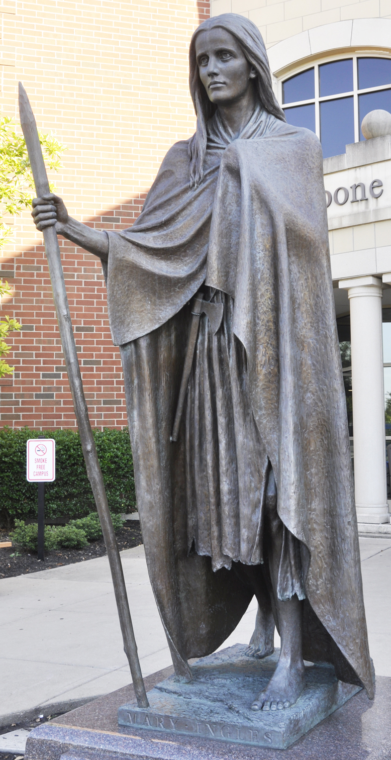 The Pioneer Mother of Kansas bronze statue was designed by Wheeler Williams in the 1920s. This casting was installed in front of the Liberal Memorial Library in 1961. [map] This statue of Dorothy and Toto is installed at Dorothy's House and the Land of Oz. The statue was created by Lee Lester and installed by 2009. Small copies of the statue were produced and sold in order to raise funds for the larger statue. [map] This sculpture of Mary Draper Ingles was created by Matthew Langford in 2008 and installed behind the Boone County Public Library. Ingles was a pioneer woman that was captured by the Shawnee Indians in 1755. She managed to escape and find her way back home after an 800-mile journey. For more, see this website. [map] |