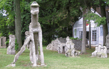 Mary Nohl's house in Fox Point, WI features a yard filled with concrete figures of people, animals and dinosaurs. The house itself is trimmed with wooden reliefs of fish and other figures. The property is partly fenced by human profiles. This is all much to the dismay of residents of the upper class neighborhood in which the house is located. Nohl’s reclusiveness kept her from being a commercial artist and her art school background also kept her from Outsider Artist status.