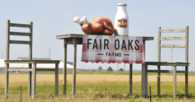 | This Table and Chairs with a bottle of milk and a turkey is located alongside I-65 as an advertisement for Fair Oaks Farms. It was installed around 2016. [map] |