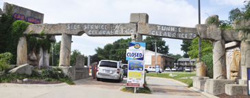 These fake rocks were probably from the 1960s. It was originally a tiki bar with a waterslide in the back. It was connected to the Rendezvous Inn between the road and the beach. In the 1980s and 1990s, the rocks building housed the U-Turn Sunburn Saloon. The building was damaged during a hurricane in 1995 and never reopened. This photo is from 2009. It still remained protected behind chain link fencing in 2017. It was demolished later that year. |