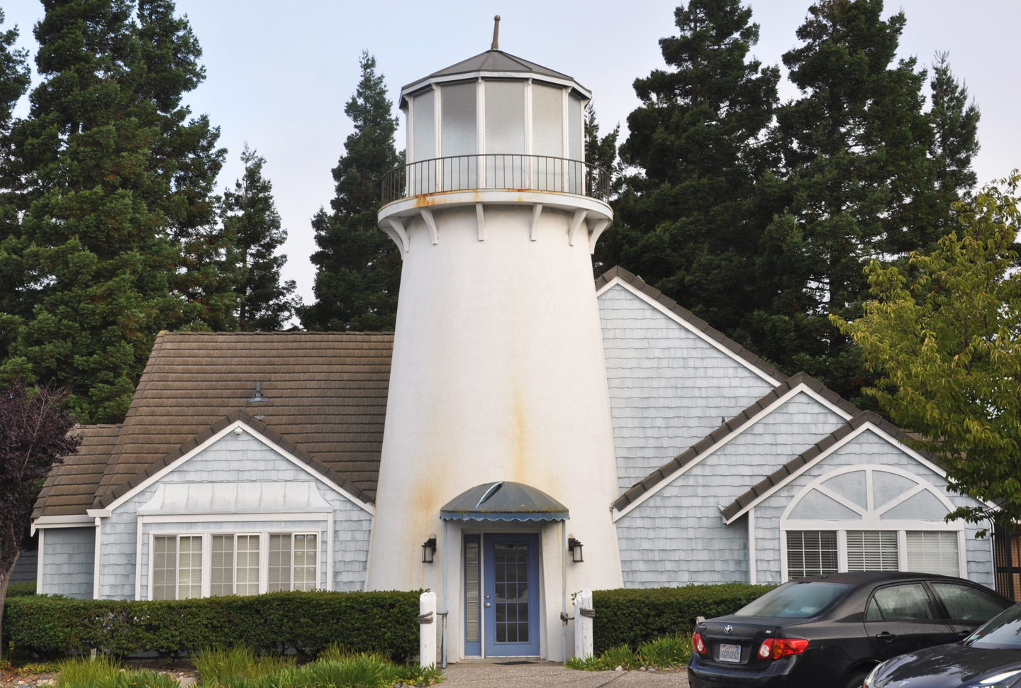 Fisherman's Wharf has another landlocked shopping center lighthouse. It appears to be used for storage. The shopping center was built in 1977 and the lighthouse was probably built then. For more, see these websites: 1 and 2. [map] The Lighthouse in Morro Bay was built around 1979 as an addition to the house of Gladys Walton, a silent film star. An elevator was built to take her to the top. She passed away in 1993. She also had a Windmill House built nearby. For more, see this website. [map] I believe this Lighthouse Building in Walnut Grove was built in 2006 as a house. [map] This Lighthouse Building in Vallejo now houses the Lighthouse Condominiums. It may have been built in 1988 or that might be when it was exapnded and additional buildings were added for the condos. It looks like this building was originally a house. [map] |
