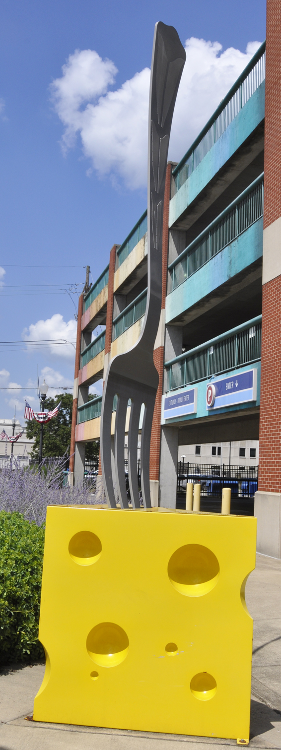 The Fork with Cheese sculpture in New Albany was created by David Thrasher and installed in 2012. [map]