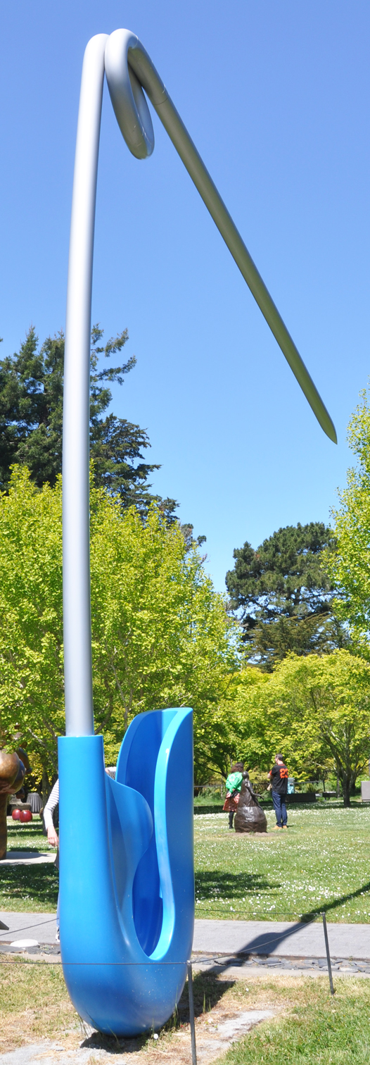 The Spoonbridge and Cherry was created and installed in 1988. The stainless steel and aluminum sculpture is approximately 29 feet long and 13 feet tall. It is installed at the Minneapolis Sculpture Garden at the Walker Art Center. The sculpture is set in a pond where it acts as a fountain. [map]