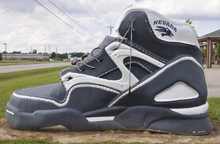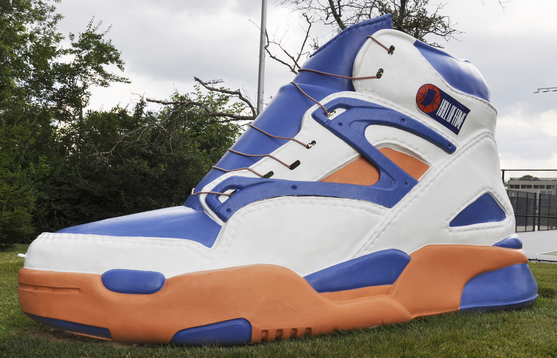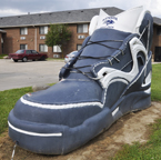 These Giant Sneakers were created in 1990-1991 and installed on a billboard. They advertised for Reebok during the NCAA Championships. They are repainted for the winners of the Championships each year.