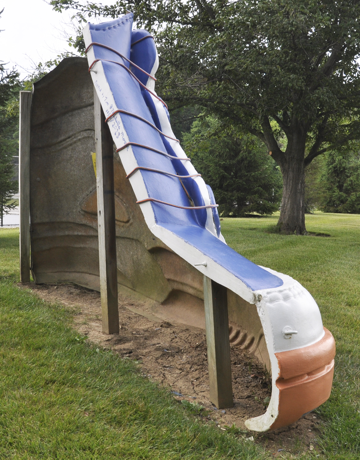 | This Shoe House was located at Steele Realty. It had been there since at least 2007. I don't know where it came from originally. There are also several statues there. The business appeared closed in 2016 but the statues and this Shoe House were still there. The Shoe House was gone by 2019. |